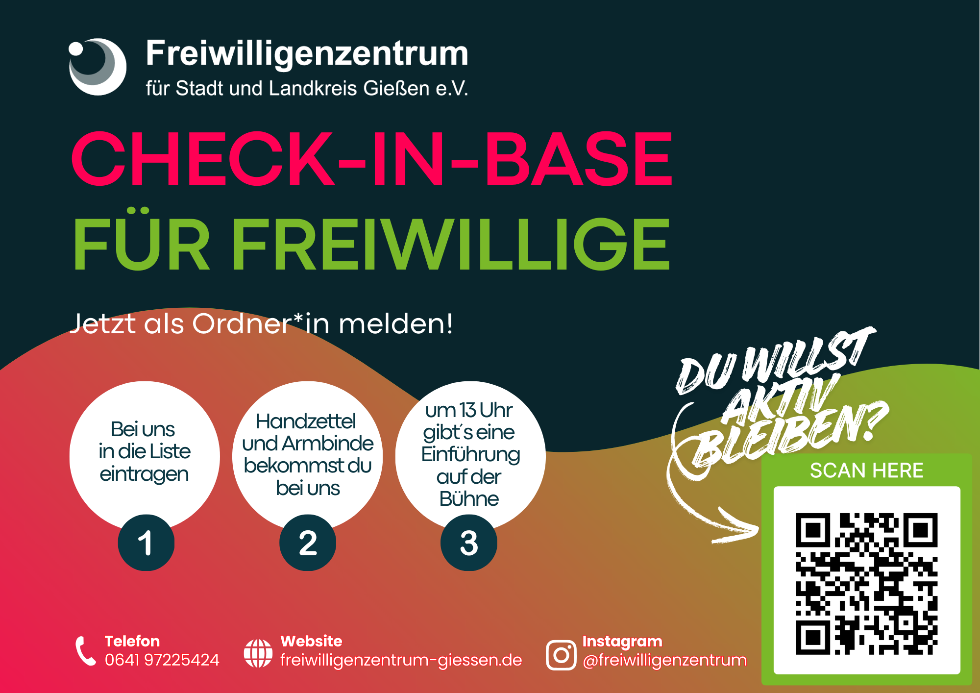 Auch wenn ihr euch spontan entscheidet, an diesem Tag aktiv zu werden – meldet euch bei unserer Check-In-Base