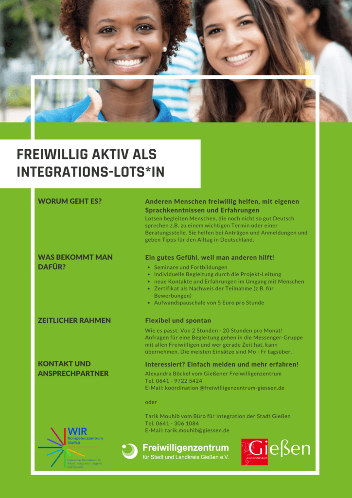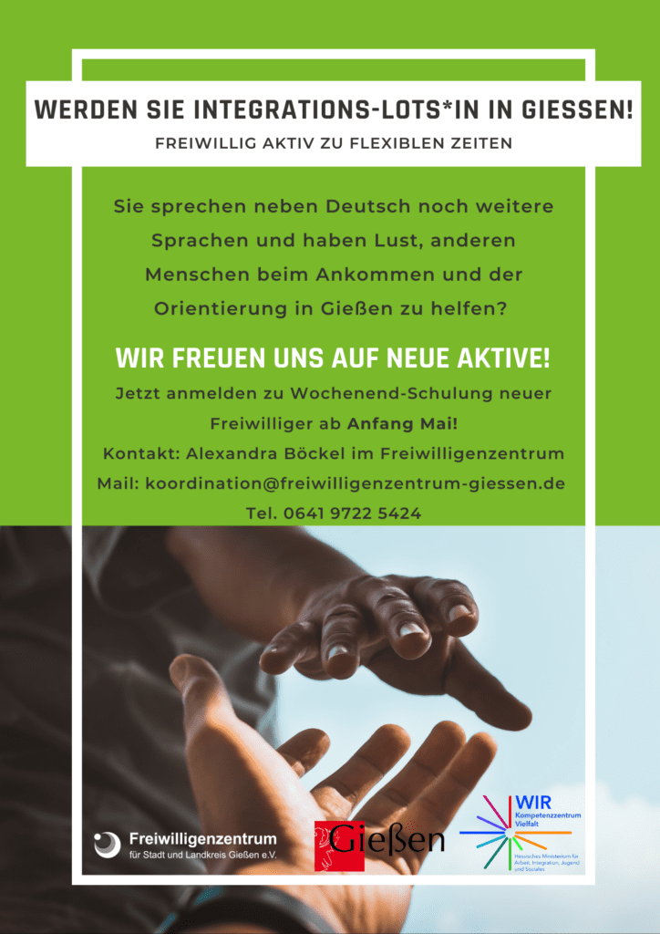 Werden Sie Gießener Integrationslots*in! Freiwillig aktiv zu flexiblen Zeiten.